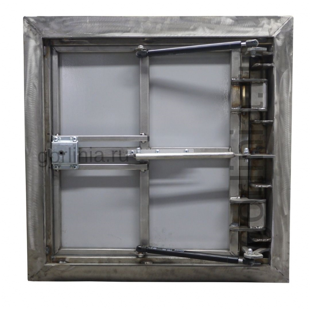 Все детали изделия выполнены из нержавеющей стали, поэтому люк устойчив к коррозии при эксплуатации в агрессивных средах.